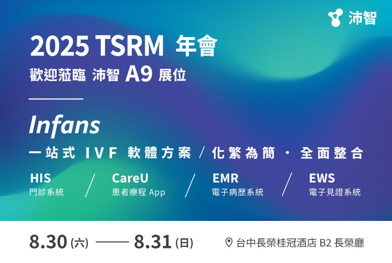 2025.08.29 【參展資訊】台灣生殖醫學會2025年會 誠摯地邀請您蒞臨台灣生殖醫學會2025年會A9展位,我們將與您分享最佳的一站式IVF軟體方案。 期待在2025台灣生殖醫學會與您見面! 時間:2025/08/30 (六) - 2025/08/31 (日) 地點:台中長榮桂冠酒店B2長榮廳 - A9展位 回前頁